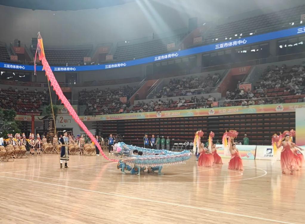唐寶(左)手持巨龍,在本屆運(yùn)動(dòng)會(huì)表演項(xiàng)目比賽中。受訪者供圖