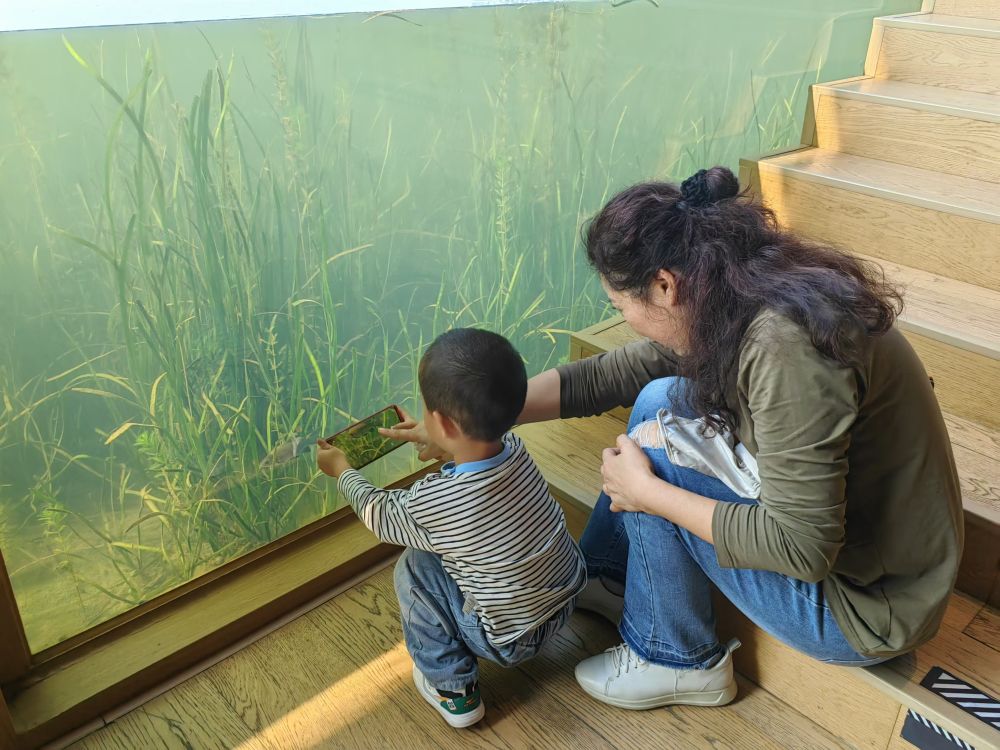 興隆湖畔的湖畔書店,人們透過書店內(nèi)的玻璃幕墻,可以看到湖底的景象。新華社記者董小紅 攝