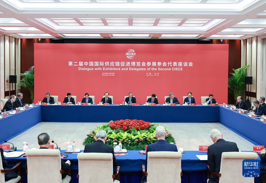 11月25日,國(guó)務(wù)院總理李強(qiáng)在北京同第二屆中國(guó)國(guó)際供應(yīng)鏈促進(jìn)博覽會(huì)參展參會(huì)企業(yè)代表座談。住友電工、蘋果公司、正大集團(tuán)、力拓集團(tuán)、康寧公司、中國(guó)工商銀行、寧德時(shí)代、聯(lián)想集團(tuán)、TCL科技集團(tuán)、百勝中國(guó)、美中貿(mào)易全國(guó)委員會(huì)等企業(yè)和機(jī)構(gòu)負(fù)責(zé)人出席。
