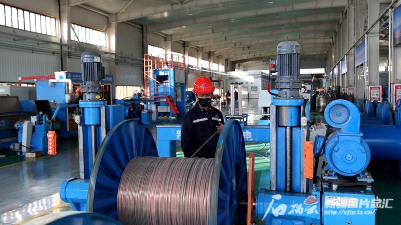 新疆新東風(fēng)電纜有限公司生產(chǎn)車間內(nèi),工人正在忙碌加工產(chǎn)品。布仁巴特?cái)z
