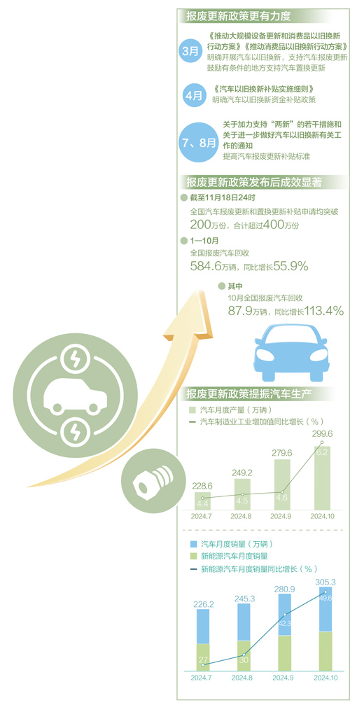 政策激發(fā)了消費(fèi)者以舊換新熱情,也讓中再生這樣的報(bào)廢汽車回收拆解企業(yè)生產(chǎn)線更加忙碌。中再生報(bào)廢汽車事業(yè)部副經(jīng)理王功獻(xiàn)介紹,截至11月上旬,中再生共收購(gòu)報(bào)廢機(jī)動(dòng)車1萬(wàn)余輛,與去年同期相比增長(zhǎng)近七成。