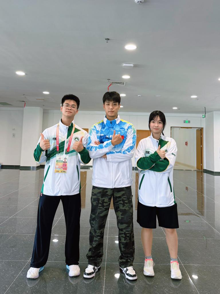 葉文喆自小愛看武俠片,在選修課上接觸民族武術(shù)后就潛心鉆研,經(jīng)常在網(wǎng)上看國(guó)內(nèi)大型賽事直播,還是四川隊(duì)隊(duì)員付楨麗的“迷弟”。一場(chǎng)比賽后,他向付楨麗要簽名,并贈(zèng)送了對(duì)方澳門特色徽章。