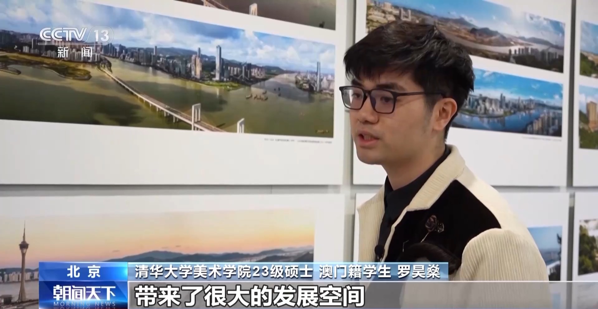 清華大學(xué)美術(shù)學(xué)院23級碩士 澳門籍學(xué)生 羅昊燊:我家就在老城區(qū)這塊,從小在這里長大,這么多年還保留了澳門原來的文化色彩。主要是發(fā)展周邊的一些區(qū)域。我也看著周圍從荒蕪空地,發(fā)展成很多高樓大廈。它的建設(shè)為我們年輕人帶來了很大的發(fā)展空間。