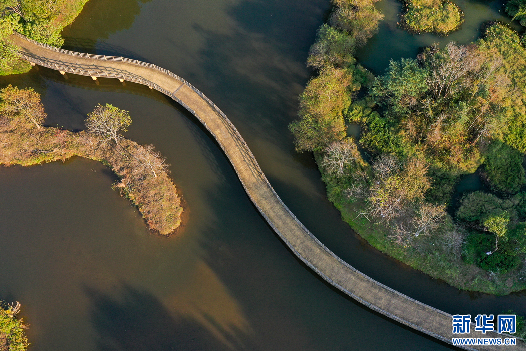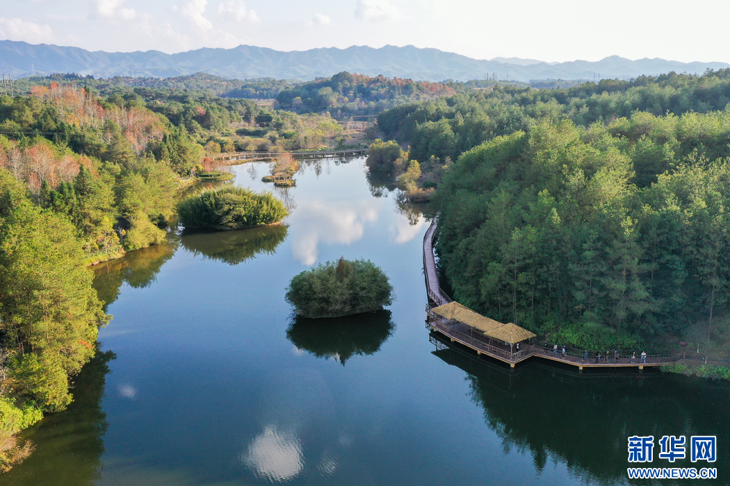 這是長汀汀江國家濕地公園冬日景觀。如今這里是國家4A級旅游景區(qū)。經(jīng)過30多年的生態(tài)治理,昔日水土流失重災(zāi)區(qū)已成為風光秀麗、林果連片的生態(tài)旅游勝地(無人機照片)。新華網(wǎng) 肖和勇 攝