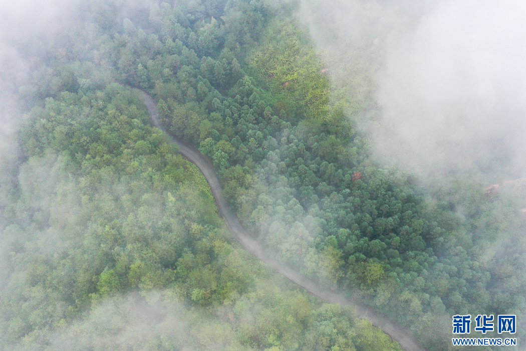 這是長汀縣水土保持科教園附近拍攝到的生態(tài)景觀。晨霧籠罩森林,寧靜而美好(無人機照片)。新華網(wǎng) 肖和勇 攝