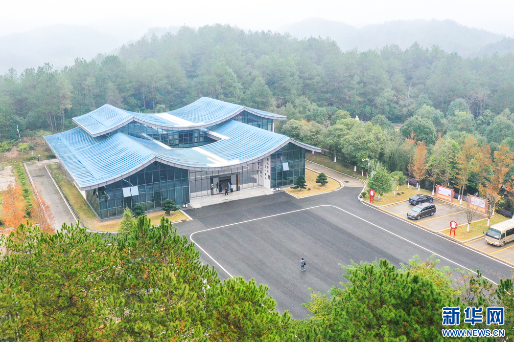 這是長汀縣水土保持科教園里的“中國·長汀水土保持科教館”,這個科教園是福建省面積最大的水土保持科教基地(無人機照片)。新華網(wǎng) 肖和勇 攝