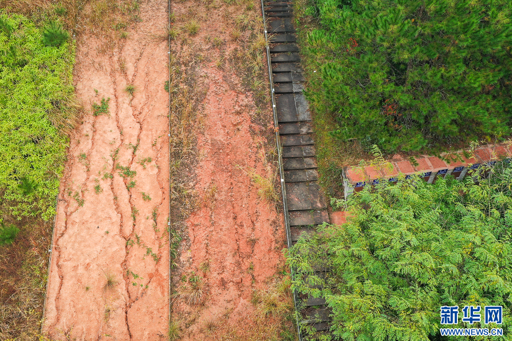 長汀縣水土保持科教園里的崩崗實驗對照區(qū)(無人機照片)。新華網(wǎng) 肖和勇 攝