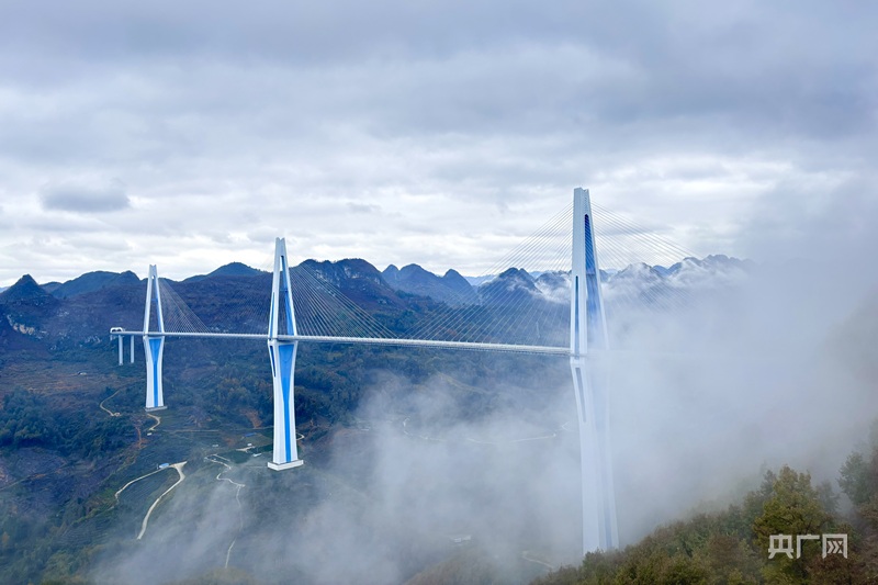 平塘特大橋聳入云端(央廣網(wǎng)記者 楊贇 攝)