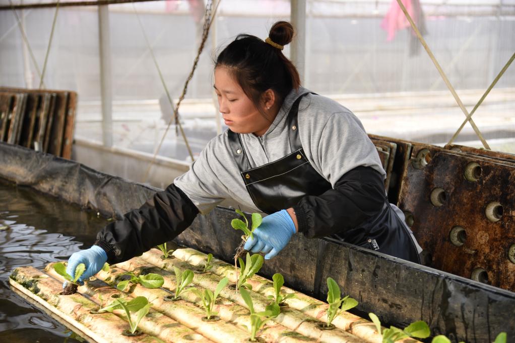 11月28日,孫振鴻在農(nóng)場內(nèi)查看蔬菜的生長情況。新華社記者 洪澤華 攝