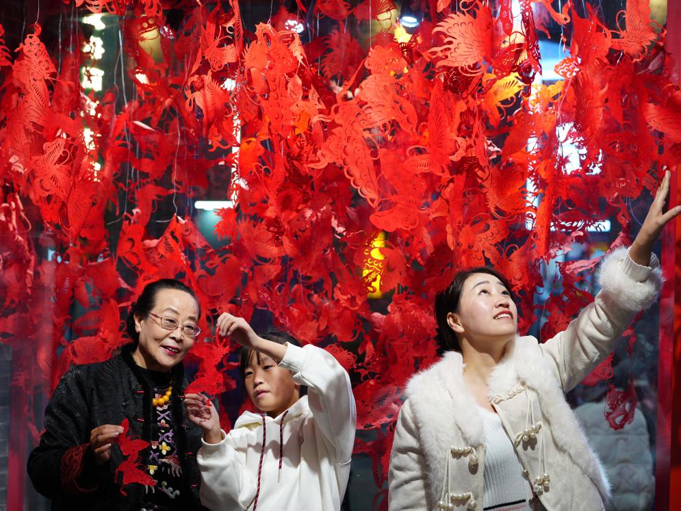 11月23日,市民在石家莊市新華區(qū)灣里廟步行街參觀非遺工作室。河北省石家莊市著力培育夜經(jīng)濟(jì)新場(chǎng)景新業(yè)態(tài),打造集美食、娛樂(lè)、購(gòu)物、非遺等于一體的夜經(jīng)濟(jì)消費(fèi)圈,豐富市民夜生活。新華社發(fā)(閆志國(guó)攝)