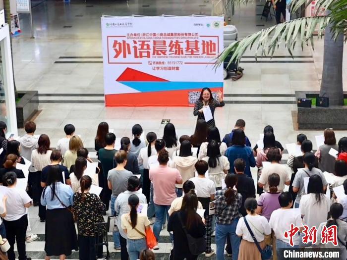 每天早上8:40-9:20,趕在大量顧客到來之前,在義烏國際商貿(mào)城的各個區(qū)塊都可以看到上百位集體晨讀、學(xué)習(xí)英語的人。其中大部分是市場內(nèi)的老板娘,很多都經(jīng)營著上千萬年外貿(mào)訂單的商鋪。