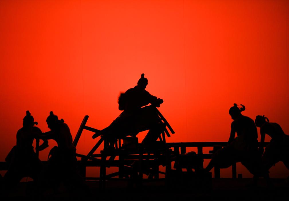 這是以“云夢睡虎地黑夫木牘”為靈感創(chuàng)排的大型歷史舞臺(tái)劇《赳赳大秦》演出現(xiàn)場(2024年9月25日攝)。 新華社記者 張博文 攝