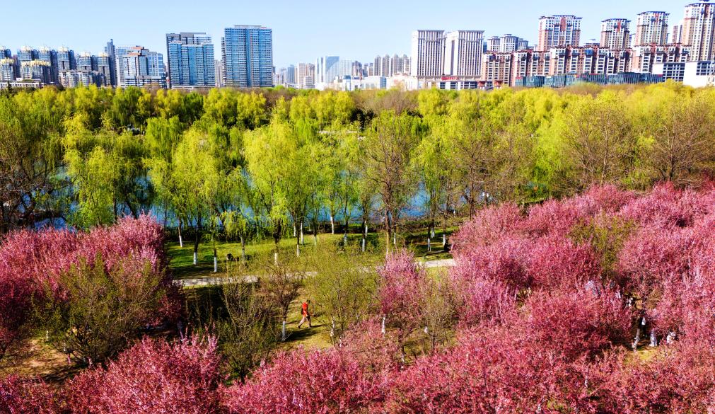 西安大明宮國家遺址公園(無人機(jī)照片,2024年3月29日攝)。 新華社記者 鄒競一 攝