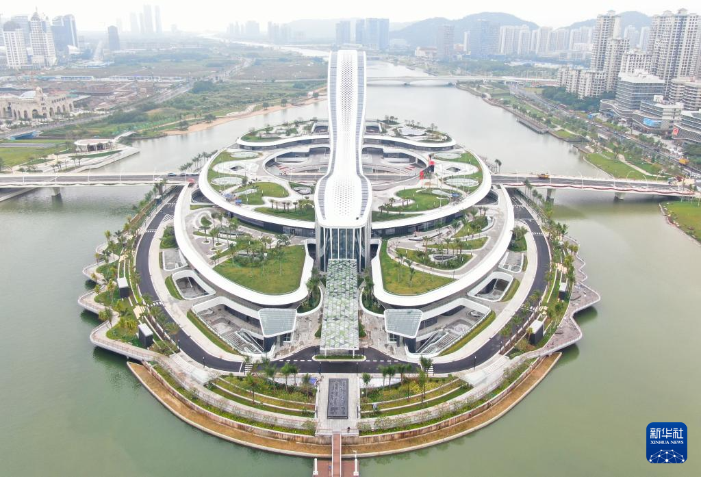 這是橫琴粵澳深度合作區(qū)標志(2024年11月26日攝,無人機照片)。
