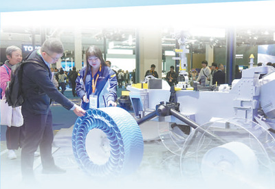 第七屆中國國際進(jìn)口博覽會(huì)上,觀眾正在了解米其林月球探測車輪胎?!√?克攝