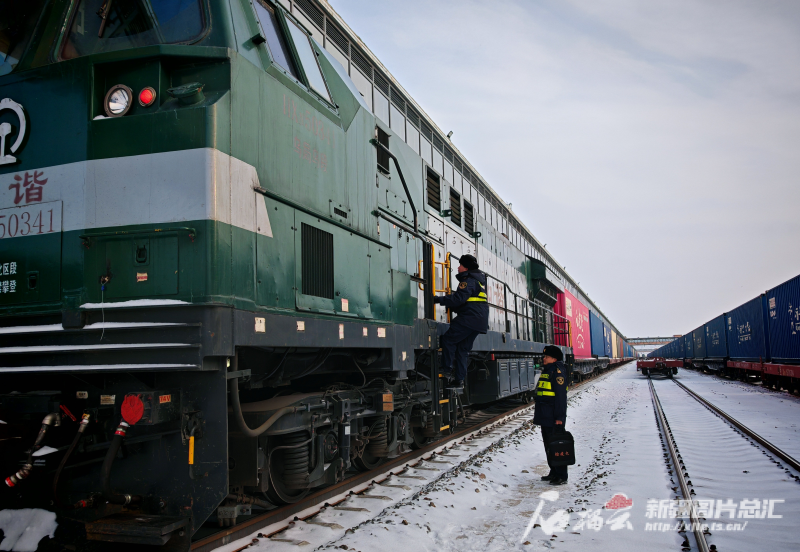 12月12日,阿拉山口海關(guān)查檢一科關(guān)員對(duì)出境中歐班列進(jìn)行登臨檢查。卡德熱依·哈力布亞提 攝