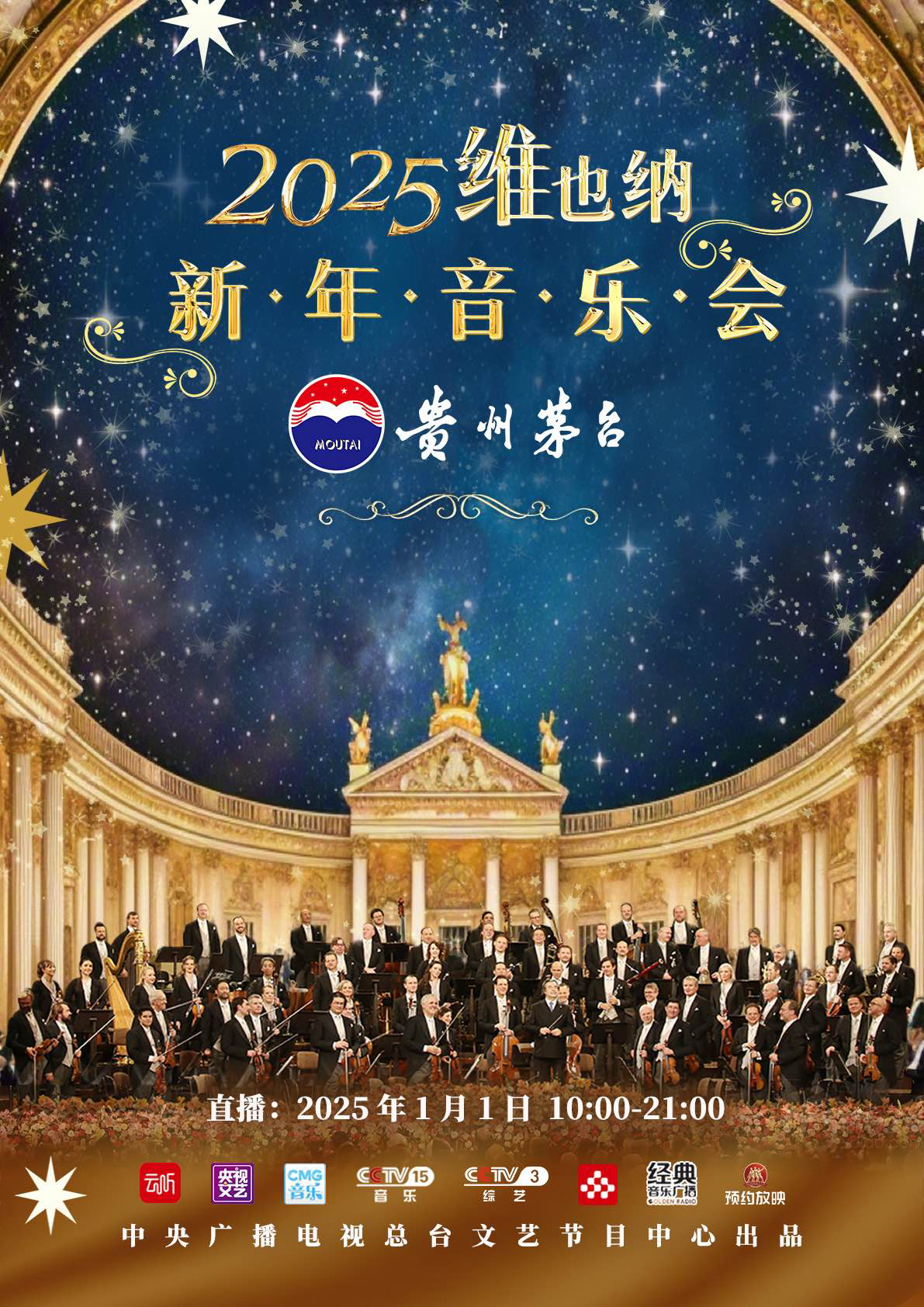 2025年1月1日,央視音樂頻道(CCTV-15)、央視綜藝頻道(CCTV-3)、央視頻、央視文藝矩陣、經(jīng)典音樂廣播、云聽、中影預(yù)約放映等多矩陣播出,讓我們?cè)谝魳返呐惆橹?,度過精彩的新年第一天!