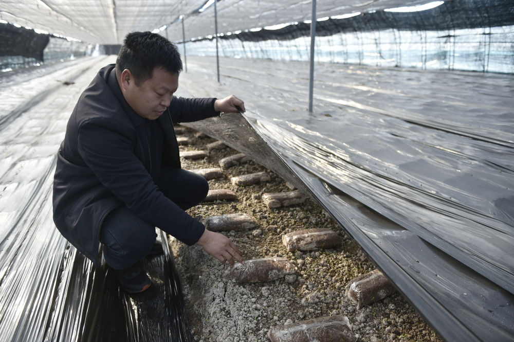 2024年1月11日,村民在河南省寶豐縣周莊珍稀菌產(chǎn)業(yè)園的羊肚菌種植大棚內(nèi)查看生長(zhǎng)情況。周莊珍稀菌產(chǎn)業(yè)園按照“企業(yè)+合作社+農(nóng)戶”的運(yùn)營模式,積極發(fā)展鄉(xiāng)村特色種植產(chǎn)業(yè)。新華社記者 魯鵬 攝