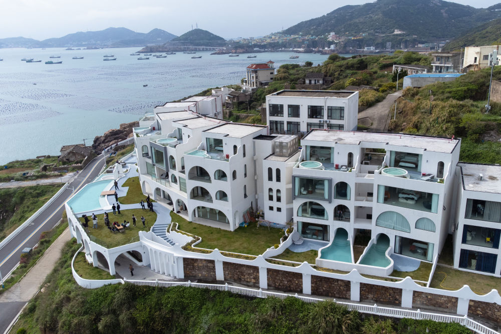 2024年4月21日在浙江省舟山市嵊泗縣泗洲塘村拍攝的共富民宿集聚區(qū)(無人機(jī)照片)。近年來,嵊泗縣持續(xù)推進(jìn)“千萬工程”美麗海島漁村建設(shè),通過漁村環(huán)境整治、節(jié)點(diǎn)景觀提升、休閑街區(qū)打造等措施將海島美景串珠成鏈。新華社發(fā)(姚凱樂 攝)