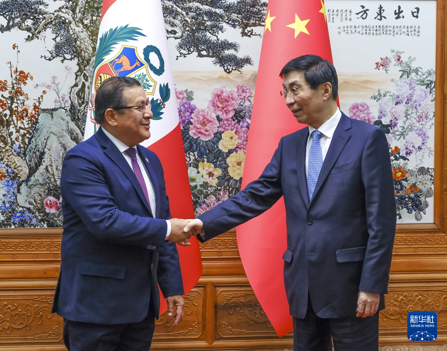全國(guó)政協(xié)主席王滬寧6日在京會(huì)見秘魯國(guó)會(huì)主席薩盧安納。