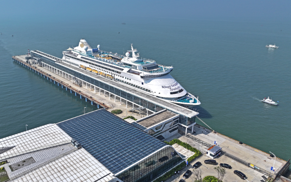 圖為2024年11月15日在北部灣國(guó)際郵輪母港拍攝的即將執(zhí)行首航任務(wù)的“藍(lán)夢(mèng)之歌”號(hào)郵輪。新華社發(fā)(無(wú)人機(jī)照片,周華攝)。
