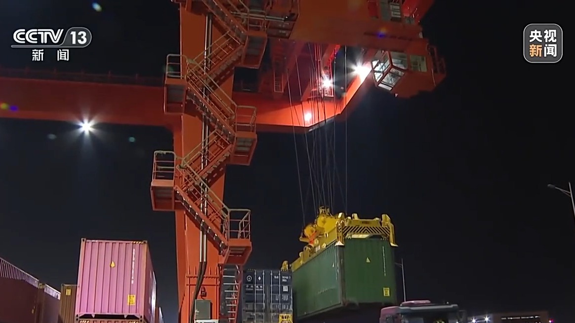 本周五,一列海鐵聯(lián)運班列??吭诤戏逝珊予F路貨運站。龍門吊起起落落,將集裝箱穩(wěn)穩(wěn)放進列車,這些集裝箱將被火車送達寧波舟山港。在合肥的這個貨運站,記者看到了寧波海關(guān)工作人員的身影。