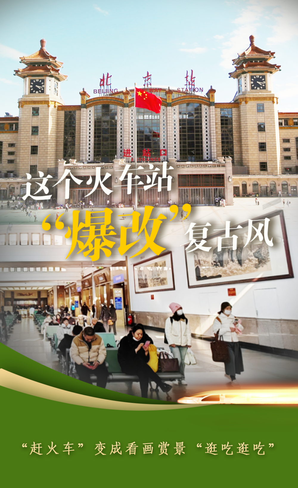 北京站之變折射出中國(guó)鐵路之變。文化味濃了,封閉的門拆了,洗手的水熱了,廁所的味沒(méi)了。今年春運(yùn),全國(guó)鐵路發(fā)送旅客有望突破5.1億人次。從“走得了”到“走得好”,中國(guó)鐵路正在高質(zhì)量發(fā)展的道路上快步前行。(海報(bào):胡傲霜)