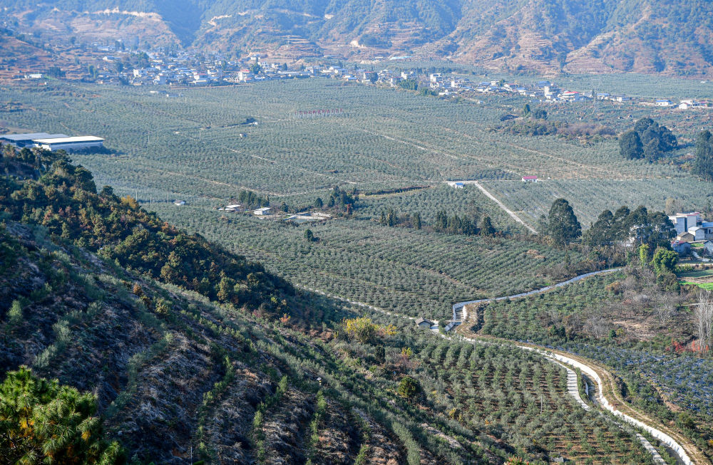 在四川冕寧縣宏模鎮(zhèn)油橄欖現(xiàn)代林業(yè)園區(qū)里,連片的油橄欖林形成產(chǎn)業(yè)規(guī)模效應(2024年12月12日攝)。