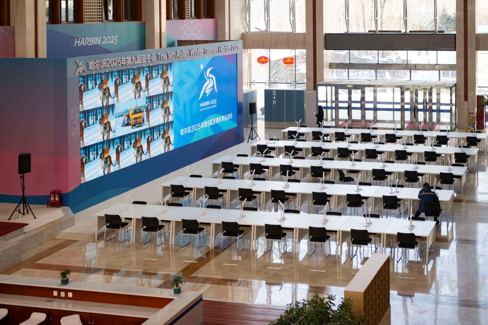 這是1月16日拍攝的2025年第九屆亞冬會雪上賽區(qū)亞布力山地媒體中心內(nèi)景。新華社記者 謝劍飛 攝