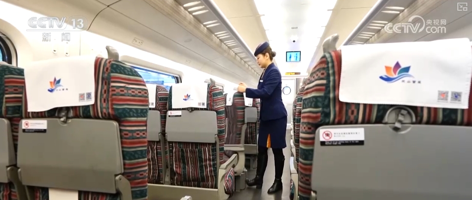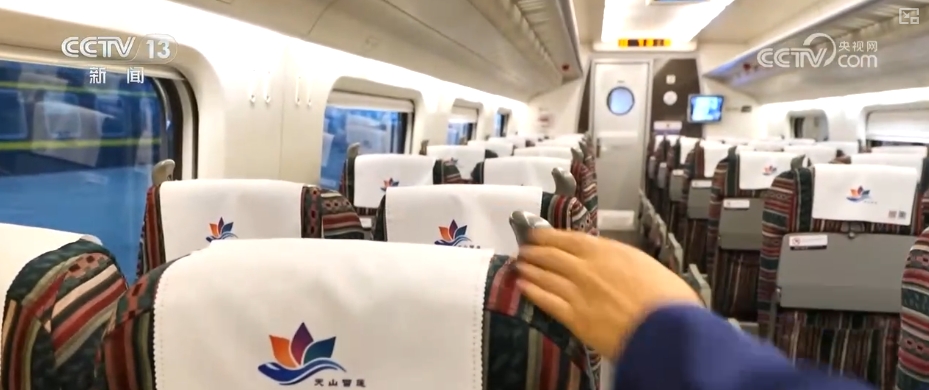 國(guó)鐵烏魯木齊局烏魯木齊客運(yùn)段C845次列車員阿依江介紹,動(dòng)車座椅上的這個(gè)犄角叫“羊角把”,是旋轉(zhuǎn)座椅的“小把手”。當(dāng)動(dòng)車組列車抵達(dá)終點(diǎn)站,再返程時(shí)列車運(yùn)行方向變了。為了讓旅客面向列車前進(jìn)的方向,這樣視覺更加舒適,他們會(huì)在終點(diǎn)站把座椅旋轉(zhuǎn)180度。像這樣腳踩座椅下方的旋轉(zhuǎn)腳踏,再用手抓住“羊角把”,輕輕一拉就能調(diào)轉(zhuǎn)座椅方向。