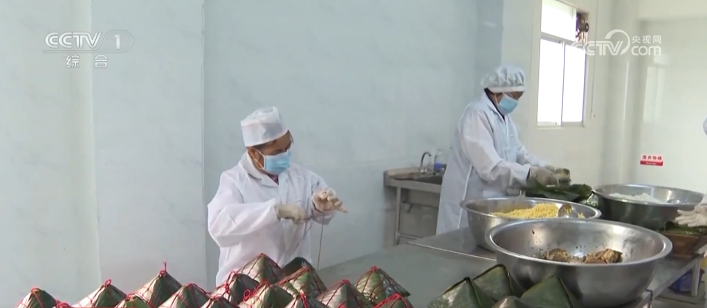 在廣西賓陽,各年貨加工廠抓緊時間制作“甘棠三寶”,也就是大粽、扣肉和粉利。將蒸過的粽葉擺放好,按順序加入餡料,壓實包好后,再一起放入大鍋中進行熬煮,這就是大粽。將精選的五花腩肉及相關配料進行腌制、油炸,這就是扣肉。蒸熟的粉利切塊,淋上花生油和醬油,加一勺酸辣醬就可享用。