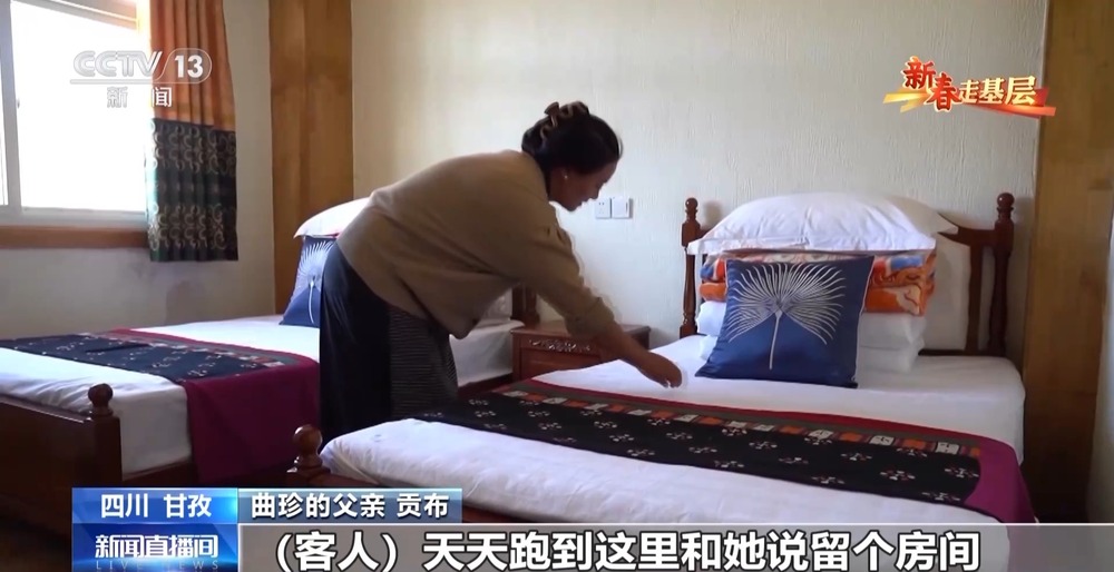 曲珍還帶著記者參觀了她的家,這是一個(gè)兩室一廳的民宿。2018年,查卡村利用豐富的地?zé)豳Y源,村里打造“溫泉小鎮(zhèn)”,做大做強(qiáng)集體經(jīng)濟(jì),曲珍家拿出5000元入了股。沒想到,第二年溫泉小鎮(zhèn)就收入40多萬元,在旅游局的扶持下,曲珍也辦起了民宿。