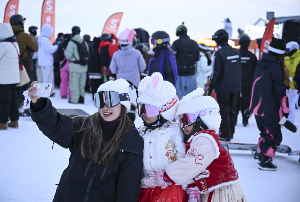 春節(jié)臨近,新疆阿勒泰地區(qū)冰雪旅游正當(dāng)時(shí),來自天南地北的游客在滑雪場感受冰雪運(yùn)動(dòng)的樂趣。