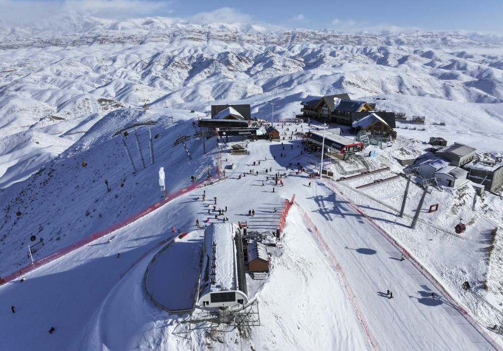 1月25日,游客在阿勒泰市將軍山國際滑雪度假區(qū)滑雪。
