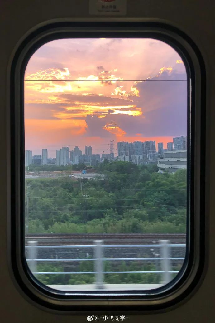 車窗外的晚霞。