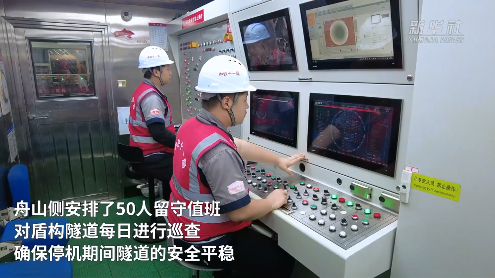 為確保工程穩(wěn)步推進(jìn),春節(jié)期間,金塘海底隧道寧波側(cè)仍有150名工人堅(jiān)守崗位,施工現(xiàn)場24小時(shí)不停工作業(yè);舟山側(cè)安排了50人留守值班,對(duì)盾構(gòu)隧道每日進(jìn)行巡查,確保停機(jī)期間隧道的安全平穩(wěn)。