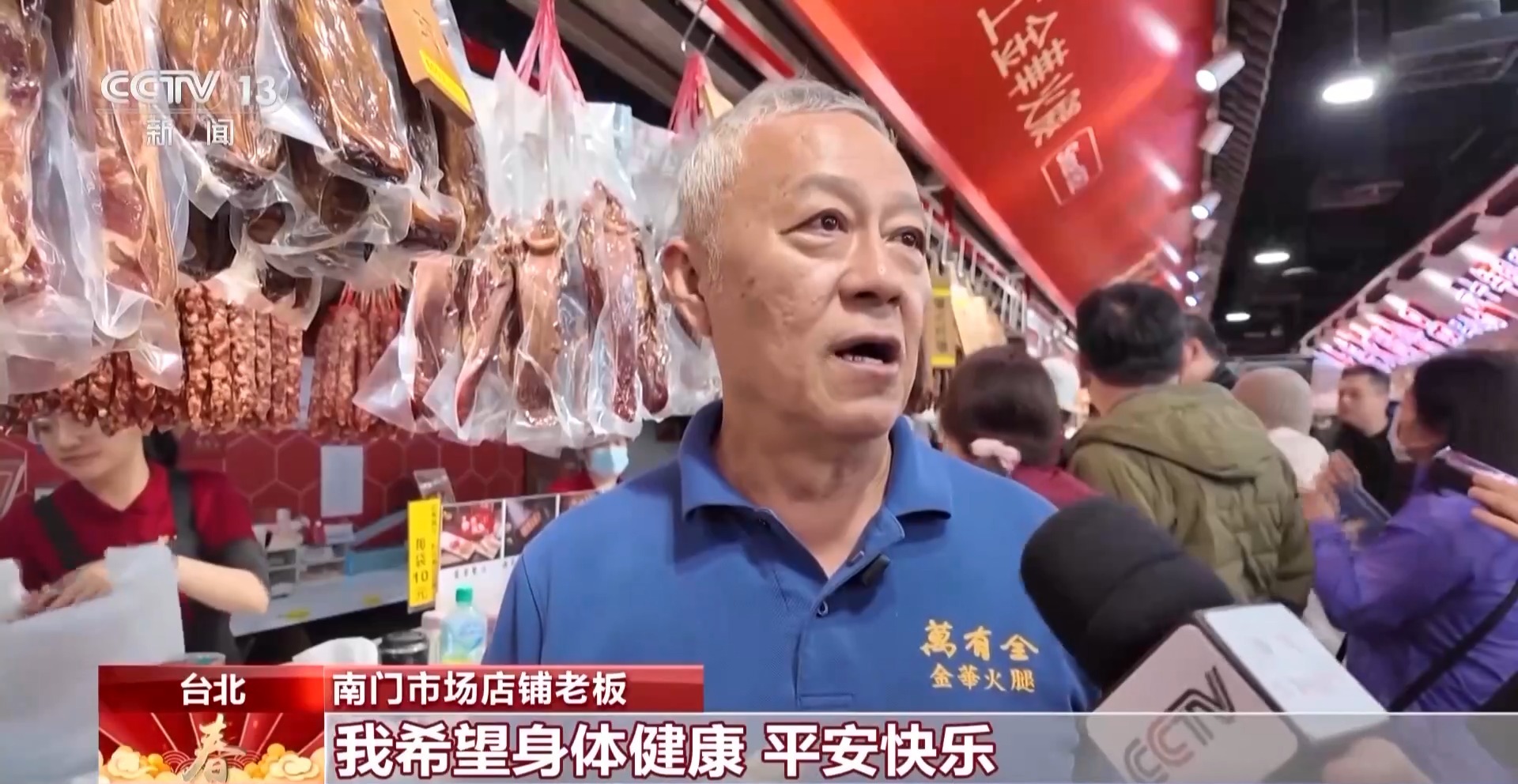 南門(mén)市場(chǎng)店鋪老板:我今年正好70歲,我希望身體健康,平安快樂(lè),祝兩岸同胞新年快樂(lè)。