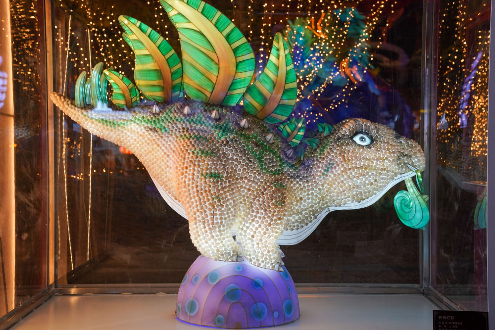 在第31屆自貢國際恐龍燈會(huì)上拍攝的彩燈(1月26日攝)。
