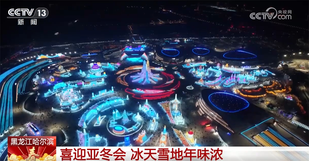 央視網(wǎng)消息:春節(jié)期間,很多人選擇來(lái)到哈爾濱冰雪大世界,在冰天雪地里感受濃濃的年味。恰逢第九屆亞冬會(huì)即將召開(kāi),園區(qū)中景觀設(shè)計(jì)充滿亞冬會(huì)元素。當(dāng)春節(jié)與亞冬會(huì)相遇,在哈爾濱冰雪大世界里是什么景象呢?接下來(lái),我們跟隨總臺(tái)記者鏡頭,去感受一下夜晚冰雪大世界里的亞冬會(huì)氛圍和濃濃年味。