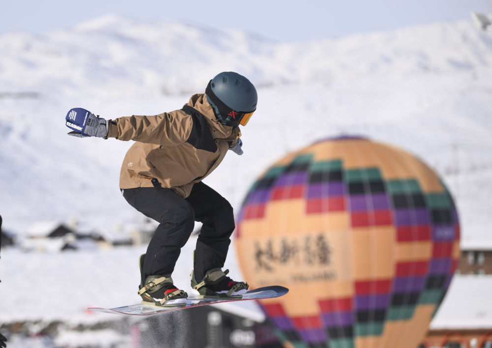 1月25日,游客在阿勒泰市將軍山國(guó)際滑雪度假區(qū)滑雪。新華社記者 胡虎虎 攝