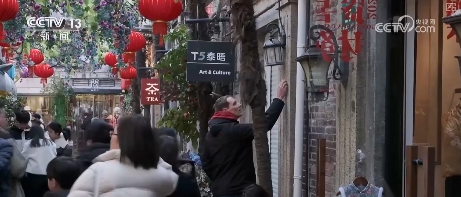 在上海黃浦區(qū)田子坊,一家家特色商店和藝術(shù)作坊有序排列,外國游客在這里既能感受上海的里弄生活,又能買到特色伴手禮。