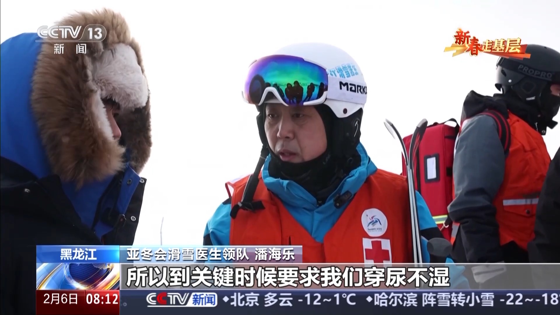 亞冬會(huì)滑雪醫(yī)生領(lǐng)隊(duì) 潘海樂:我們正規(guī)保障高坡度的這些滑雪醫(yī)生要保障四五個(gè)小時(shí)都不能動(dòng),所以到關(guān)鍵時(shí)候要求我們穿帶尿不濕。