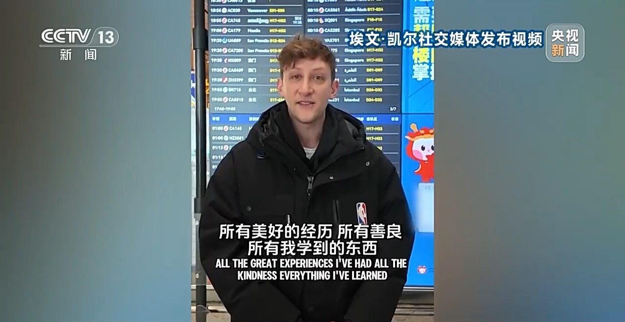 幾天前,埃文·凱爾暫別中國(guó),難掩不舍之情,他說(shuō)中國(guó)已經(jīng)成為他第二個(gè)家。
