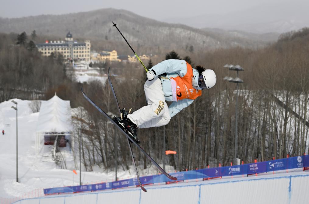 2月8日,李方慧在比賽中。當日,在第九屆亞冬會自由式滑雪女子U型場地技巧決賽中,中國選手李方慧獲得金牌,這是中國體育代表團在本屆亞冬會上的首枚金牌。新華社記者 夏一方 攝