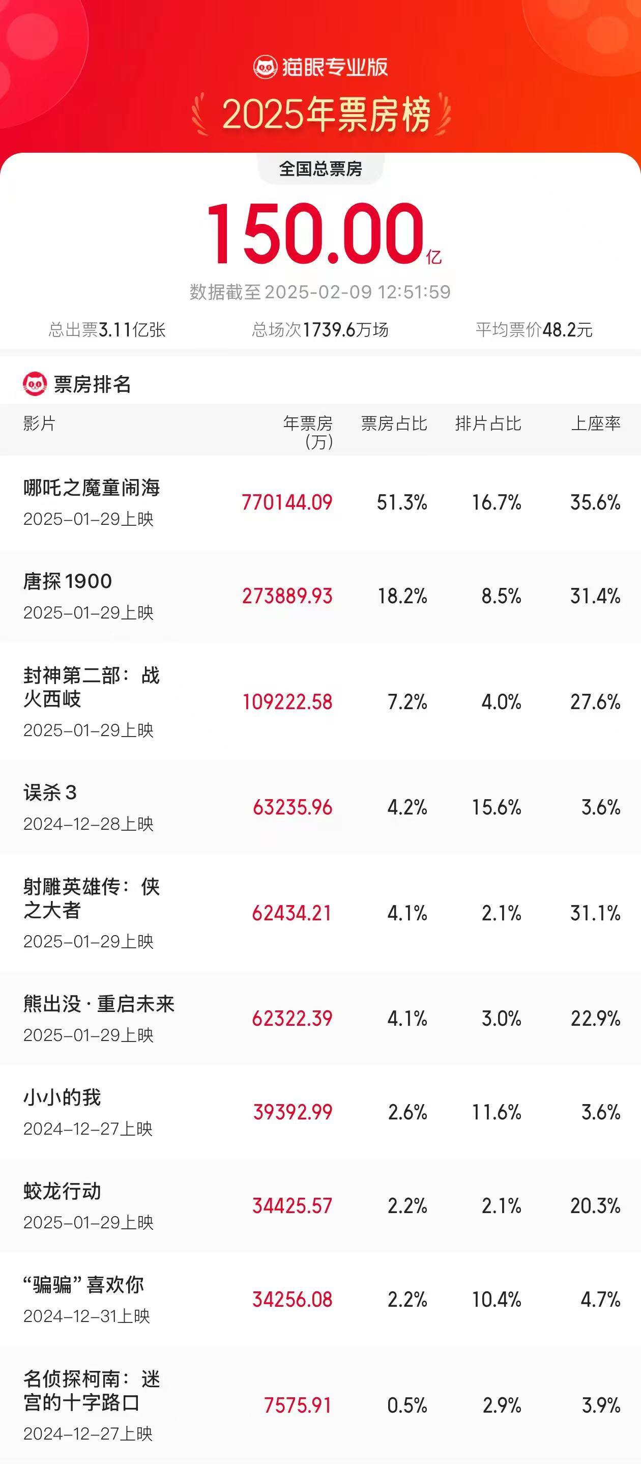2025年度票房(含預(yù)售實時)