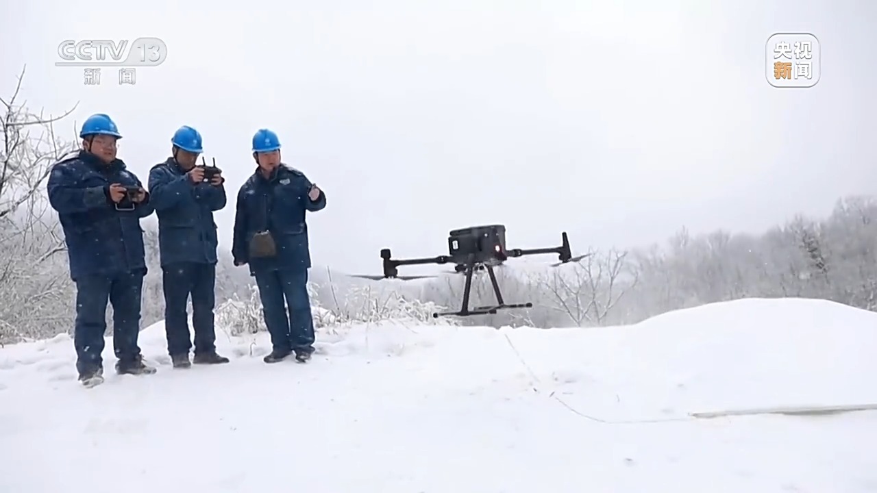 對(duì)于融冰站設(shè)備覆蓋范圍之外的線路,這些電力工人又嘗試?yán)?strong>無人機(jī)懸掛絕緣棒,撞擊覆冰。然而線路結(jié)冰并不只局限在導(dǎo)線上面,導(dǎo)線上、鐵塔上、絕緣子上都會(huì)結(jié)冰。