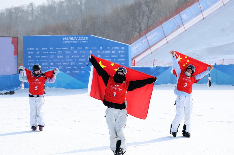 當(dāng)日中國(guó)代表團(tuán)的4金全部來自雪上項(xiàng)目。越野滑雪和滑雪登山雙雙收官,中國(guó)隊(duì)繼續(xù)出色發(fā)揮。斬獲越野滑雪男子4X7.5公里接力和女子4X5公里接力項(xiàng)目?jī)山鸷?,中?guó)隊(duì)拿下越野滑雪6枚金牌中的5枚,創(chuàng)造亞冬會(huì)該項(xiàng)目最好成績(jī)。滑雪登山項(xiàng)目中國(guó)隊(duì)更是獨(dú)步亞洲,包攬混合接力前三名,這個(gè)新增項(xiàng)目的三個(gè)小項(xiàng)共9枚獎(jiǎng)牌全部被中國(guó)隊(duì)收入囊中。