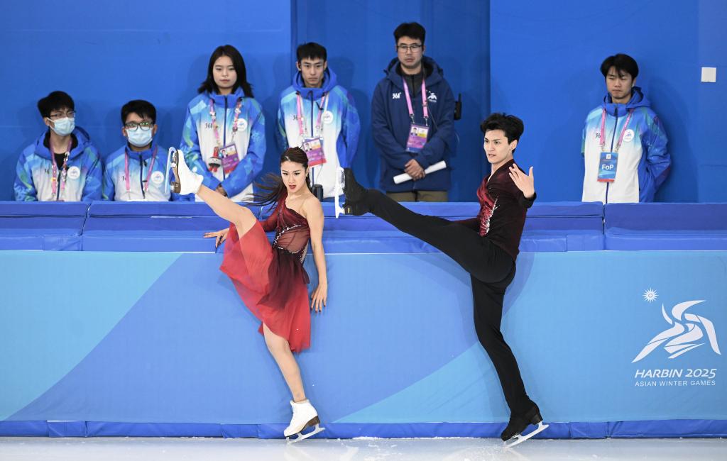 花樣滑冰當(dāng)日產(chǎn)生兩金。中國(guó)隊(duì)的任俊霏/邢珈寧雖然在自由舞比賽中排名第一,但難以彌補(bǔ)前一天韻律舞上的差距,他們最終以171.25分獲得冰上舞蹈銀牌,日本組合吉田唄菜/森田真沙也以173.31分奪冠。雙人滑金牌被烏茲別克斯坦選手葉卡捷琳娜·蓋尼什/德米特里·奇吉列夫奪得,朝鮮組合廉太鈺/韓錦澈獲得銀牌,這也是烏茲別克斯坦和朝鮮本屆亞冬會(huì)的首枚獎(jiǎng)牌。女子單人滑短節(jié)目比賽中,中國(guó)隊(duì)兩位選手安香怡和朱易都發(fā)揮出自己的水平,暫列五、六位。