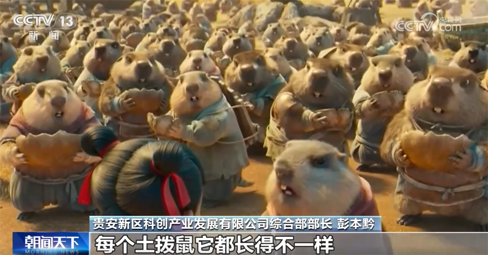貴安新區(qū)科創(chuàng)產(chǎn)業(yè)發(fā)展有限公司綜合部部長彭本黔稱:“導(dǎo)演要求每一個天兵都要有自己的一個構(gòu)圖,每個土撥鼠都長得不一樣,對渲染的算力要求很高,要是渲不好就很模糊了。整個《哪吒之魔童鬧?!分谱骱臅r5年,在我們這里渲染基本上都用了小三年的時間?!?/p>