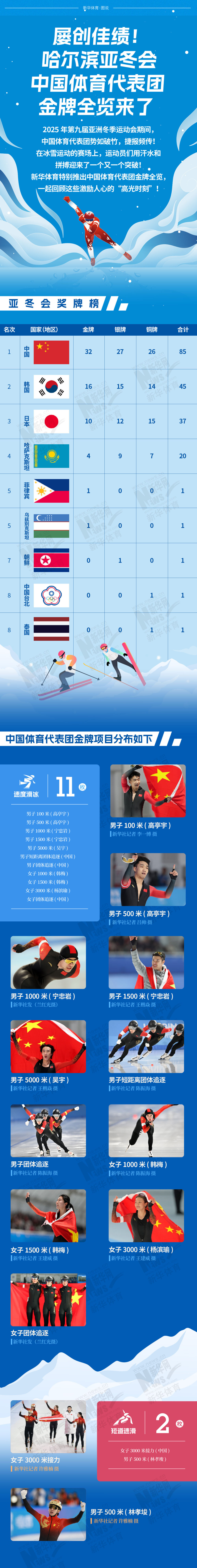 長(zhǎng)圖|屢創(chuàng)佳績(jī)!哈爾濱亞冬會(huì)中國(guó)體育代表團(tuán)金牌全覽來了!